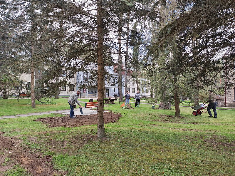 Tajā piedalījās slimnīcas darbinieki, kuri ar entuziasmu ķērās pie darbiem: tika grābtas lapas, sakopta apkārtne, iestādītas puķes un uzbērta melnzeme ap pagājušajā gadā slimnīcas teritorijā uzstādītajiem soliņiem. Pateicoties kopīgam darbam un saskaņai, mūsu apkārtne ieguva pavasarīgu un sakoptu izskatu.